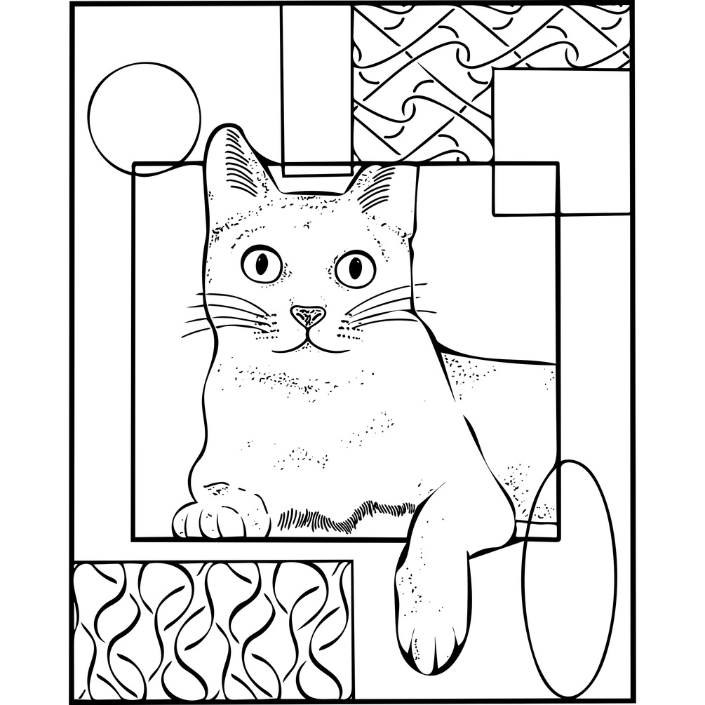 Enjoy yourself coloring this surprised cat with geometric shapes design. Don’t overthink the creative process, don’t worry about being perfect. Allow yourself to flow with your abstract thoughts. Just focused on being present and having fun!